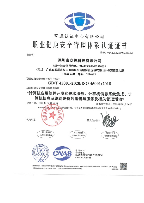 2020年08月07日至09日, 深圳市环通认证中心有限公司审核组对我公司进行环境管理体系和职业健康安全管理体系认证审核。